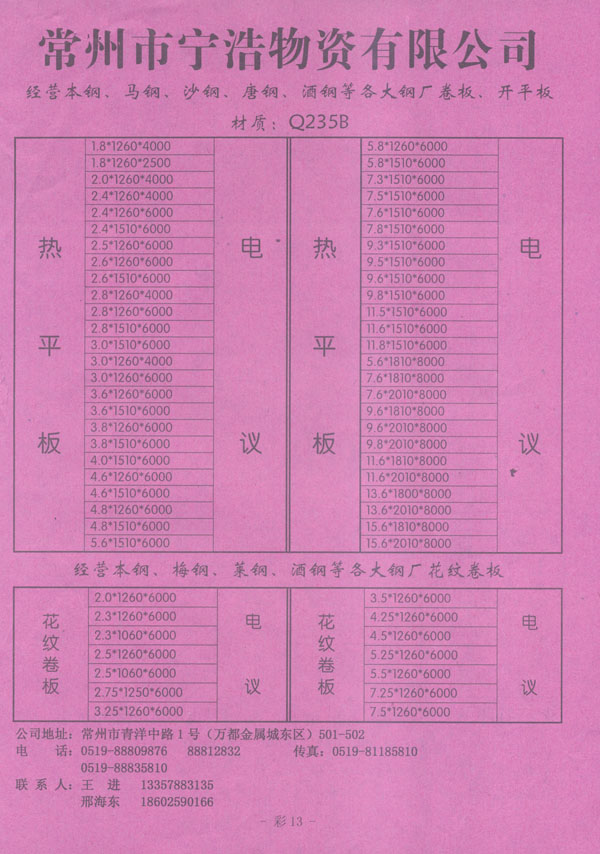 地址:常州市青洋中路1號萬都金屬城東區(qū)501、502 法人代表:刑海東 電話:0519-88809876 傳真:0519-81185810