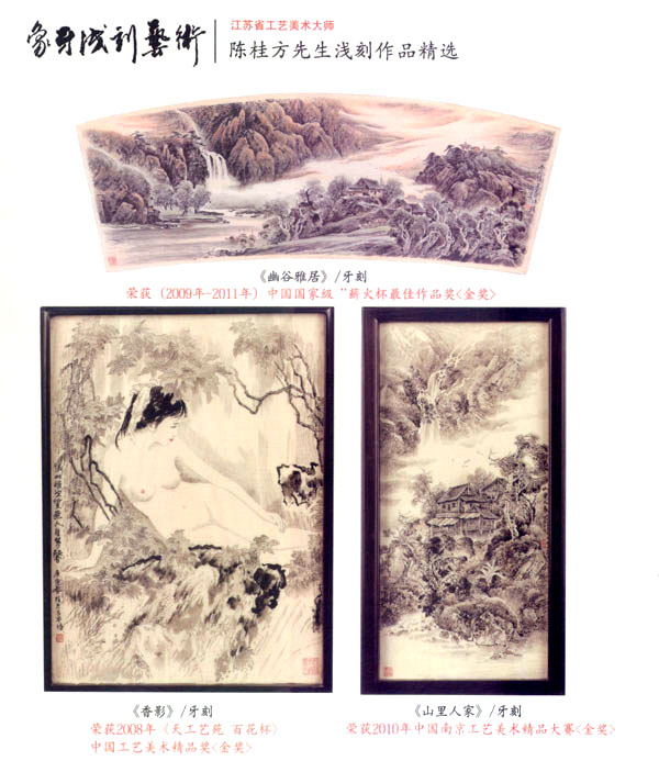 陳桂方,江蘇常州武進(jìn)人,中國著名雕刻藝術(shù)家,江蘇省工藝美術(shù)大師、研究員級、高級工藝美術(shù)師,江蘇省非物質(zhì)文化遺產(chǎn)《象牙淺刻》代表性傳承人。畢業(yè)于中國書畫函授大學(xué),深造于清華大學(xué)、南大美術(shù)系,現(xiàn)任中國工藝美術(shù)協(xié)會會員,江蘇省工藝美術(shù)學(xué)會理事,常州市工藝美術(shù)家協(xié)會副秘書長,常州市工藝美術(shù)行業(yè)協(xié)會常務(wù)理事,武進(jìn)工藝美術(shù)協(xié)會副主席。陳桂方大師淺刻作品的藝術(shù)特點(diǎn):山水氣韻生動,氣勢磅礴,場面壯觀,刀法細(xì)膩:人物仕女生動可人,栩栩如生,充分表達(dá)體現(xiàn)了中國象牙工藝獨(dú)具的內(nèi)在文化底蘊(yùn)和現(xiàn)代社會的審美觀念及獨(dú)特的淺刻藝術(shù)表現(xiàn)技藝。對每件藝術(shù)作品創(chuàng)作都精益求精,強(qiáng)調(diào)藝術(shù)創(chuàng)作的思想性、意境及內(nèi)涵。注重章法構(gòu)思,掌握牙刻藝術(shù)的特性表現(xiàn),作品具有鮮明生動的時代氣息,獨(dú)具所創(chuàng)工筆與寫意相結(jié)合的牙刻藝術(shù)表現(xiàn)手法和表現(xiàn)形式,出眾、飄逸、多變的刀法技藝,粗獷處見細(xì)微、方寸間見大觀的創(chuàng)作理念深受專家權(quán)威的肯定和業(yè)內(nèi)人士的一致好評。陳桂方大師至企頑事象牙淺刻藝術(shù)創(chuàng)作近四十余載,完善了自己的創(chuàng)作體系,成就了自己獨(dú)特的藝術(shù)風(fēng)格。作品數(shù)年來連續(xù)二十多次榮獲國家最高藝術(shù)精品大獎《金獎》,象牙淺刻作品《李逵探母》已被國家工藝美術(shù)館收藏,并頒發(fā)了國家收藏證書,在全國數(shù)十年間尚屬首次。當(dāng)前,陳桂方牙刻藝術(shù)作品已深受廣大海內(nèi)外業(yè)內(nèi)人士、收藏家們的鐘愛、青睞、熱藏,并被譽(yù)為當(dāng)代最杰出最具潛質(zhì)的實(shí)力派藝術(shù)大師。