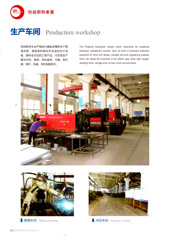 江蘇柏銳斯特車業(yè)有限公司(原常州市金普達(dá)客車零部件有限公司)是常州長江客車集團(tuán)的子公司。位于水、陸、空交通便利的江蘇省常州市小河鎮(zhèn)通江路8號(hào),公司占地面積1萬余平方米。具有客車燈具、后視鏡、塑制件,鈑金件四大系列200余種產(chǎn)品的生產(chǎn)設(shè)備和能力,長期以來為常州依維柯客車公司、南京金陵、武漢公用、貴州云馬等客車生產(chǎn)廠家配套。 質(zhì)量是企業(yè)的生命,讓用戶滿意是我們永恒的追求。本廠以近乎苛刻的質(zhì)檢制度,不斷地以國際標(biāo)準(zhǔn)對(duì)每一道工序進(jìn)行檢測,以確保零缺陷的產(chǎn)品質(zhì)量,確保送達(dá)客戶手里的產(chǎn)品是一流的。 公司擁有高科技的技術(shù)力量,高水平的管理機(jī)制,高素質(zhì)的員工隊(duì)伍,所生產(chǎn)的產(chǎn)品和良好的售后服務(wù),深受廣大用戶好評(píng)。公司已通過ISO9001-2000質(zhì)理體系認(rèn)證,被江蘇省機(jī)械廳評(píng)為車用燈具定點(diǎn)配套B類企業(yè),信用等級(jí)AAA級(jí),注冊商標(biāo)為"普達(dá)"。