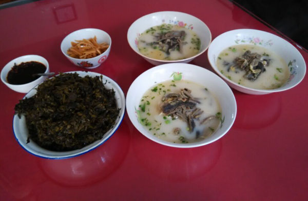 歡迎來(lái)孟河老街的八斤面館吃孟河鱔絲面! 這孟河鱔絲面據(jù)說(shuō)是康熙年間傳下來(lái)的,算起來(lái)已有三百多年的歷史了,要比常州小籠饅頭、大麻糕一百多年歷史悠久得多。在孟河一帶,做孟河鱔絲面的面館有許多家,就像常州做小籠饅頭、大麻糕的店家一樣的多。 “八斤面館”的孟河鱔絲面是有傳承的,是孟河兩家比較正宗的孟河鱔絲面館之一。孟河鱔絲面制作技藝曾列入新北區(qū)非物質(zhì)文化遺產(chǎn)調(diào)查,調(diào)查時(shí)“八斤面館”的老板巢八斤也提供了有關(guān)資料。 這家小面館取名為“八斤面館”,是因?yàn)槔习逍∶徒邪私。走進(jìn)這片小小的面館,只有兩張八仙桌。只有臺(tái)子上的玻璃臺(tái)刻還有點(diǎn)七十年代的特征,其它地方還都是五、六十年代鄉(xiāng)下家里頭的風(fēng)格。 老板巢八斤祖上三輩都是廚師,現(xiàn)在兒子也在上海做廚師。老板娘原來(lái)是上海知青,上山下鄉(xiāng)時(shí)投親靠友來(lái)到孟河,后來(lái)在孟河與巢八斤結(jié)婚,成家立業(yè)。與在支青大返城時(shí)放棄回大上海的機(jī)會(huì),與老公開(kāi)了這個(gè)“八斤面館”,用老板娘的話說(shuō)是"做做白相相的",所以守著這片小店,只想把鱔絲面做好。也不想做大,也不想到常州到上海去開(kāi)大一點(diǎn)的面館。 這孟河鱔絲面是用一斤有十幾條的“筆梗黃鱔”,先用開(kāi)水把黃鱔燙熟,然后用竹刀批下二條黃鱔肉,除去骨頭肚腸,切成段后入油鍋里炸酥,再用白湯烹制成為面澆頭。而面湯是用鱔魚骨頭、豬骨等用大鍋猛火煮上三、四個(gè)鐘頭,成為一鍋濃濃的白湯,再進(jìn)行調(diào)味。面條也是用細(xì)細(xì)的銀絲面,大碗寬湯,鮮香味濃,沒(méi)有一丁點(diǎn)鱔魚的土腥氣,再加上白胡椒粉,吃到嘴里全身舒坦。