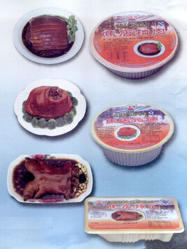 焦店扣肉: 色香昧形俱佳,現(xiàn)已成為江南地區(qū)的知名民間品牌。2006年5月被評為武進十大農(nóng)家招牌菜,2008年9月列入武進區(qū)級非物質文化遺產(chǎn)保護名錄。2013年5月列入常州市級非物質文化遺產(chǎn)保護名錄。 焦店元蹄: 主原料取自地方優(yōu)良品種豬之前蹄膀(肘子)。以傳統(tǒng)制作技藝蒸焐秘制而成。其形如元寶,稱之為元蹄。色澤醬紅,甜咸相宜,酥爛入味,是農(nóng)家喜慶、宴請的一道經(jīng)典大菜。 焦店蹄爪: 主原料取自豬前爪,其膠原蛋白豐富,肥而不膩,鮮香酥爛,是農(nóng)家一道養(yǎng)顏美昧佳肴。