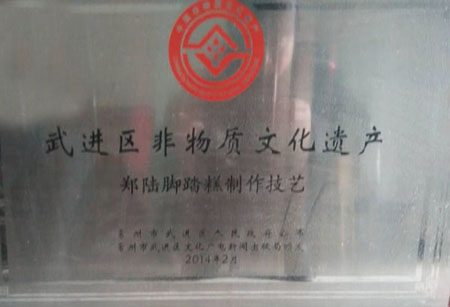 常州鄭陸何金興腳踏糕制作坊從事腳踏糕制作工藝200多年,五代傳承,制作面積300平方米左右,腳踏糕是用黏性大的米或米粉蒸成的糕,是中國農(nóng)歷年的應(yīng)時食品。春節(jié),我國很多地區(qū)都有講究吃年糕。年糕有紅、黃、白三色,象征金銀,年糕又稱“年年糕”,與“年年高”諧音,寓意著人們的工作和生活一年比一年提高。所以前人有詩稱年糕:“年糕寓意稍云深,白色如銀黃色如金。年歲盼高時時利,虔誠默祝望財臨。”另有浙江省寧波市江北區(qū)慈城鎮(zhèn)的水磨年糕也是特別有名。