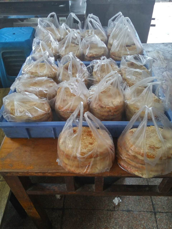 常州人夏亞寶的大麻糕技術(shù)是上世紀(jì)80年代更著新橋麻糕店的師傅周金生學(xué)的,1999年開店至今,在附近一帶做得小有名氣,向?qū)W校供應(yīng)麻糕,整整6年。 “做大麻糕太辛苦,半夜爬起來(lái)準(zhǔn)備熱爐子、和面、做餡,年輕人吃不了這苦,15年我都沒(méi)請(qǐng)人,和老婆一起打過(guò)來(lái)的!毕膩唽氈钢直凵系臓C傷的痕跡說(shuō),能堅(jiān)持烤桶制作大麻糕的真心不多了。夏亞寶的烤桶是自制的,爐心常州買不到,他托人從無(wú)錫買來(lái),15年前85元一個(gè),前年漲到150元。“烤桶的爐心其實(shí)就是以前船上人家用的行爐”,去底后鑿個(gè)洞,然后外面加上隔熱材料,最后貼上鐵片”。 15年,這已經(jīng)是第三只貼桶了。