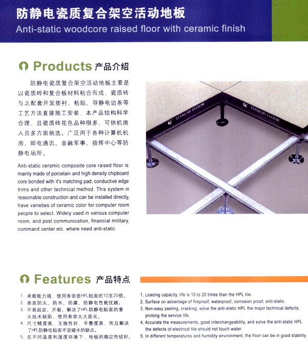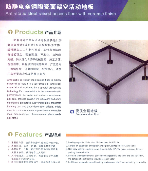 常州天馳活動(dòng)地板有限公司始創(chuàng)于2010年,原身是常州市武進(jìn)區(qū)橫林天馳機(jī)房地板廠,地處橫林工業(yè)園區(qū),交通便捷。 公司主要生產(chǎn)和銷(xiāo)售各種機(jī)房地板,自創(chuàng)立以來(lái),以品質(zhì)第一,信譽(yù)第一,服務(wù)第一的理念堅(jiān)持做全國(guó)最優(yōu)質(zhì)量。 防靜電高架活動(dòng)地板是計(jì)算機(jī)行業(yè)發(fā)展起來(lái)的新型鋪地材料,隔離了潮氣,靜電灰塵。最重要的是解決了綜合布線問(wèn)題,無(wú)需預(yù)埋管線,可隨時(shí)拆卸,搬移,保證了資訊設(shè)備完整的優(yōu)點(diǎn),適應(yīng)了智能化樓宇中信息自動(dòng)化技術(shù)對(duì)所處環(huán)境的特定要求,避免了廣大客戶(hù)的雙重投資,使現(xiàn)代化辦公程度更加高效,辦公場(chǎng)所更加舒適。 公司專(zhuān)業(yè)生產(chǎn)“天馳”系列活動(dòng)地板,符合國(guó)家安全要求,種類(lèi)完備多樣,其中防靜電瓷質(zhì)高架通路地板除具有普通瓷質(zhì)的裝飾和實(shí)用性外,其耐磨,防水,防火功能優(yōu)于其他同類(lèi)產(chǎn)品,深受客戶(hù)歡迎。 公司大力發(fā)展國(guó)內(nèi)外銷(xiāo)售業(yè)務(wù),多次中標(biāo)國(guó)內(nèi)重點(diǎn)裝飾工程,例:湖南電視臺(tái),寧波縣變電站,鞍山市120急救指揮中心等。 公司將一如既往開(kāi)發(fā)和制造一流的產(chǎn)品,愿與廣大有識(shí)之士合作發(fā)展,共創(chuàng)美好未來(lái)!