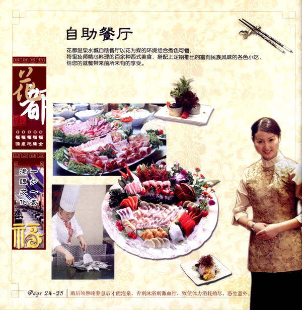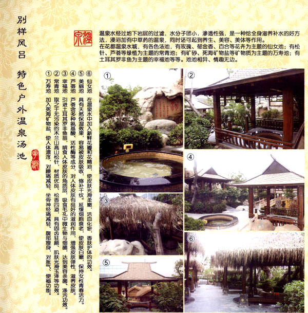 淹城花都溫泉水城孕育天地之精華,悅身、悅?cè)、悅心、悅神。置身其中泉水潺潺,霧氣繚繞、花瓣飄香,恍若仙境。“掬水月在手,弄花香滿衣”,花都溫泉的浪漫與溫潤(rùn)在這里完美展現(xiàn)。 花都溫泉水城包括洗浴區(qū)、戲水世界、露天溫泉、自助餐廳、生態(tài)房、別墅區(qū)、紅文化房、VIP區(qū)等多種功能區(qū)域,是集溫泉養(yǎng)生、休閑住宿、演藝會(huì)務(wù)為—體的休閑度假勝地,給賓客帶來(lái)江南小鎮(zhèn)的浪漫水城之旅。 古木新枝畔賓客對(duì)酒當(dāng)歌,溪泉石椅旁把茶品啜。 淹城-三勤生態(tài)酒店,這里是一處綠色生態(tài)的美食家園。此地鬼斧神工.奇水異石,和風(fēng)細(xì)雨林中穿過(guò),引百鳥朝來(lái)暮歌;這里集生態(tài)餐飲、演藝、中小型會(huì)務(wù)為一體,將現(xiàn)代裝飾風(fēng)格和古雅拙樸的自然裝修完美整合;這里聚集大江南北名廚,推出精致綠色美昧佳肴。來(lái)到這里,賓客可享田園至美之景,品舌尖至鮮之味,實(shí)乃人生一大樂(lè)事。