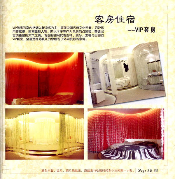 淹城花都溫泉水城孕育天地之精華,悅身、悅?cè)、悅心、悅神。置身其中泉水潺潺,霧氣繚繞、花瓣飄香,恍若仙境!稗渌略谑,弄花香滿衣”,花都溫泉的浪漫與溫潤(rùn)在這里完美展現(xiàn)。 花都溫泉水城包括洗浴區(qū)、戲水世界、露天溫泉、自助餐廳、生態(tài)房、別墅區(qū)、紅文化房、VIP區(qū)等多種功能區(qū)域,是集溫泉養(yǎng)生、休閑住宿、演藝會(huì)務(wù)為—體的休閑度假勝地,給賓客帶來(lái)江南小鎮(zhèn)的浪漫水城之旅。 古木新枝畔賓客對(duì)酒當(dāng)歌,溪泉石椅旁把茶品啜。 淹城-三勤生態(tài)酒店,這里是一處綠色生態(tài)的美食家園。此地鬼斧神工.奇水異石,和風(fēng)細(xì)雨林中穿過(guò),引百鳥(niǎo)朝來(lái)暮歌;這里集生態(tài)餐飲、演藝、中小型會(huì)務(wù)為一體,將現(xiàn)代裝飾風(fēng)格和古雅拙樸的自然裝修完美整合;這里聚集大江南北名廚,推出精致綠色美昧佳肴。來(lái)到這里,賓客可享田園至美之景,品舌尖至鮮之味,實(shí)乃人生一大樂(lè)事。