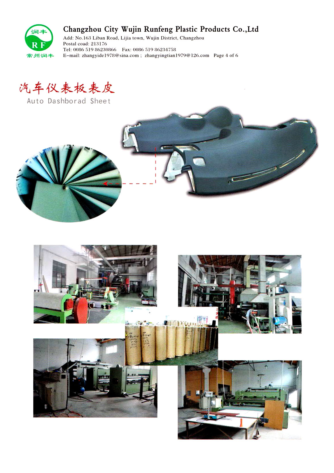 常州市武進潤豐塑料制品有限公司地處風景美麗經(jīng)濟發(fā)達的長江三角洲常州市東郊禮嘉鎮(zhèn),公司占地面積約8000平方米,且地理位置優(yōu)越,是中外客商常涉之地。 本公司專業(yè)生產(chǎn)汽車儀板軟化表皮、PVC門護板表皮、PVC復合制品、壓延薄膜制品,(塑料制品除醫(yī)用塑料制品),車輛零部件,機械電器零部件,電子元件,沖壓件制造,加工無妨制品,玻纖氈(GFP板),麻氈板等。本公司的產(chǎn)品在國內(nèi)一線乘用車上廣泛使用。產(chǎn)品通過國家汽車質(zhì)量監(jiān)督檢驗中心檢測,并取得了各種證書,如亞瑟國際認證;ISO/TS1694:2009等。 本公司技術(shù)力量雄厚,生產(chǎn)設備先進。多年來,建立了較完善的質(zhì)量管理體系,以先進的檢測技術(shù),優(yōu)質(zhì)的服務態(tài)度,向客戶提供最優(yōu)秀的產(chǎn)品,在同行中享有良好的聲譽。 歡迎新老客戶來公司指導,洽談,合作。