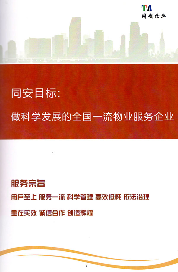 常州市同安物業(yè)管理有限公司注冊(cè)1999年,發(fā)展至今已有多年歷史,本公司坐落于美麗的龍城常州,秉承“融聚無(wú)限未來(lái)”的核心理念,融專(zhuān)業(yè)認(rèn)才,匯優(yōu)質(zhì)資源以”專(zhuān)心,細(xì)心,耐心”的服務(wù)態(tài)度,為客戶(hù)打造“安心,順心,稱(chēng)心”的服務(wù)感受。 公司始終以“打造中國(guó)最值得信賴(lài)和最值得尊重的物業(yè)管理服務(wù)集成商”為愿景自我鞭策,不斷前行。同安物業(yè)以客戶(hù)滿(mǎn)意為終極目標(biāo),不斷加強(qiáng)”崗位資格認(rèn)證能力,人才招聘與職業(yè)化培訓(xùn)能力,產(chǎn)品策劃與管理設(shè)計(jì)能力,品質(zhì)監(jiān)督與管控能力,技術(shù)更新與運(yùn)營(yíng)優(yōu)化力“五大專(zhuān)業(yè)能力的培養(yǎng)和提升,實(shí)現(xiàn)“精品化管理,專(zhuān)業(yè)化服務(wù)”。 公司發(fā)展至今,員工總數(shù)近千余人,大專(zhuān)以上學(xué)歷200多人,中高級(jí)技術(shù)人員160人,維修人員140人,物業(yè)管理師80名,公司接管面積達(dá)3100000多平方米,設(shè)涉及住宅小區(qū),別墅,大型游樂(lè)場(chǎng),公園,醫(yī)院,廠區(qū),商業(yè)等。公司的工作管理逐步導(dǎo)入ISO9001質(zhì)量體系和ISO4001環(huán)境管理體系和GB/T28001職業(yè)健康安全管理體系,嚴(yán)格按照質(zhì)量體系的標(biāo)準(zhǔn)執(zhí)行。