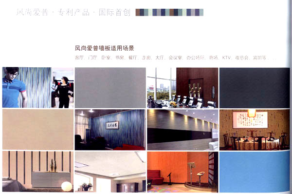 常州愛普裝飾材料有限公司位于美麗富饒的江蘇省常州市,是一家專業(yè)從事墻板設(shè)計(jì)與生產(chǎn)的企業(yè)。年生產(chǎn)墻板300萬平方米。"愛普墻板"是我公司生產(chǎn)的一種新型墻面裝飾材料,產(chǎn)品由人造金剛石耐磨層、三聚氰胺裝飾紙、EO級(jí)HDF材料、高檔防潮平衡紙,采用先進(jìn)的德國(guó)生產(chǎn)設(shè)備,通過一流的生產(chǎn)工藝--一次性熱壓技術(shù)壓貼成型。具有環(huán)保、耐磨、防刮擦、防潮、阻燃、隔音、保溫、抗沖擊、抗污等優(yōu)點(diǎn)。經(jīng)中華人民共和國(guó)專利認(rèn)定為 專利產(chǎn)品(專利號(hào):ZL200820127448.X),為國(guó)際首創(chuàng),其知識(shí)產(chǎn)權(quán)受國(guó)家法律保護(hù)。