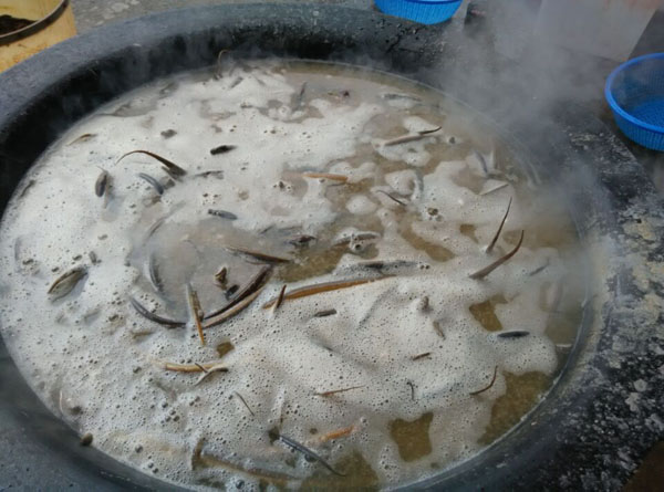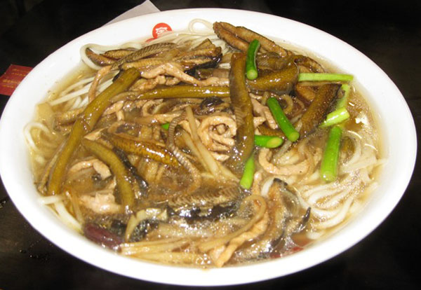 常州新北區(qū)孟河公陽小吃店從事鱔絲面23年,經營面積100平方米,黃鱔全是野生,面湯采用高湯制作(鱔魚湯),下面的時候先用開水把黃鱔燙熟,然后用竹刀批下二條黃鱔肉,除去骨頭肚腸,切成段后入油鍋里炸酥,再用白湯烹制成為面澆頭。而面湯是用鱔魚骨頭、豬骨等用大鍋猛火煮上三、四個鐘頭,成為一鍋濃濃的白湯,再進行調味,吃到嘴里全身舒坦。