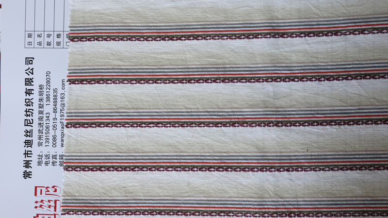 常州市迪絲尼紡織有限公司座落在中外馳名的紡織工業(yè)基地--江蘇常州,位于常州市武進(jìn)高新區(qū)南夏墅朱明橋7號(hào),交通、通信十分便利。 我公司擁有40臺(tái)劍桿織機(jī)和36臺(tái)進(jìn)口噴氣織機(jī),年產(chǎn)量500萬(wàn)米以上,公司產(chǎn)品以色織布為主,包括:米通、青年布、牛津紡、氨綸彈力布,具體分為T/C類、T/R類、全棉類、棉麻類、竹節(jié)類、雙層布、色織條格布和提花格布等。我公司也生產(chǎn)印花布、燈芯絨等。產(chǎn)品暢銷世界各地,深受國(guó)內(nèi)、東南亞及西歐客商的青睞。 我公司秉著誠(chéng)信、專業(yè)、品質(zhì)、服務(wù)的經(jīng)營(yíng)理念,在競(jìng)爭(zhēng)中合作,在合作中提高。定能成為您忠實(shí)的商業(yè)合作伙伴!