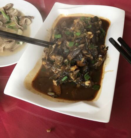 菜肴介紹:以滆湖小刀魚為新鮮的原材料,佐以自家的配料,在油鍋中煎炸而成。炸得金燦燦的小刀魚上,撒上把新鮮的香菜末,看著就讓人流口水。 菜肴介紹:當(dāng)天的農(nóng)家菜評(píng)比中,以豬蹄為主題的農(nóng)家菜有好幾道,可只有這道慶蘭豬爪,獲得了評(píng)委們的一致青睞。色澤鮮亮,熬得入味,吃完后口中有回味。當(dāng)天的比賽中,評(píng)委還“嫌”慶蘭樓送來(lái)參評(píng)的豬蹄太少了,七八個(gè)評(píng)委都不夠吃。 “下婆魚本來(lái)叫下坡魚,大家吃了都覺得好,一傳十十傳百地就給叫走了音,變成下婆了!鼻弭贼缘臏韬铮痪W(wǎng)撈出千百條鮮靈靈的小魚兒。新鮮干凈的小 炸得酥脆,就是一道最好的下酒或是下粥菜。揣在兜里當(dāng) 也很不錯(cuò)呀,嘎嘣咬著,極松脆極鮮美的,魚刺也都炸酥啦,無(wú)論是老人還是年輕人、小孩都能吃。 除了漏湖里的魚,嘉澤的鵝、雞、鴨等家禽也遠(yuǎn)近聞名。也是因?yàn)樯鷳B(tài)環(huán)境好的緣故,一群學(xué)農(nóng)的博士在這里開起了大水牛市民農(nóng)園,主打的就是有機(jī)食材。
