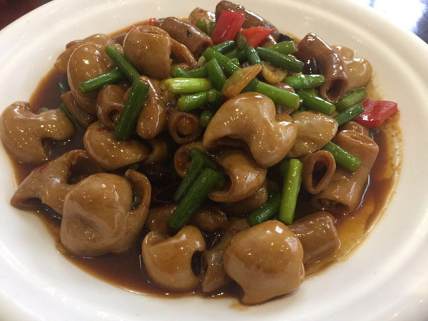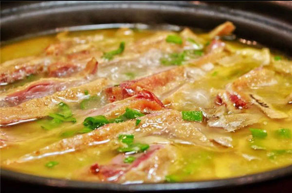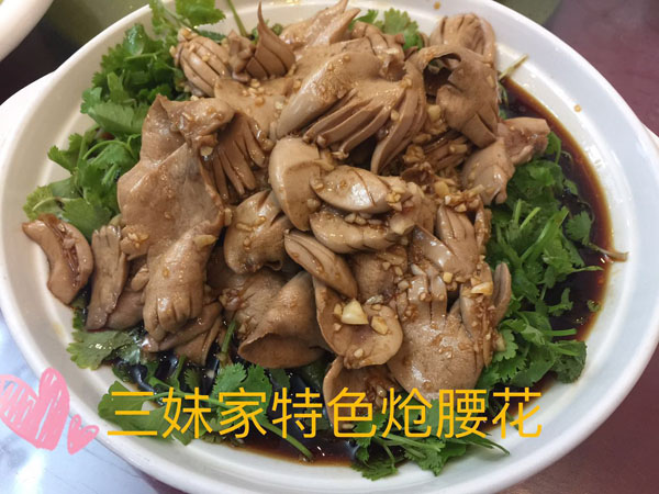 橫林有個地兒叫楊歧村,有句老話叫“上不靠橫林,下不靠洛社”,說的就是那里。 楊歧村過去幾十米就是無錫地界,今天小編推薦的土菜館「三妹農(nóng)家小吃」就在那里。 當(dāng)小編一路七拐八拐,中午11點半到達那里時,門面雖然很簡陋,但店門口已然停了好多輛車。剛進入店門,就發(fā)現(xiàn)這家店人氣好旺,十幾桌基本都坐滿了。(所以說,人不可貌相,餐館也是如此) "三妹,三妹。⒌昀锟腿私袉韭暡唤^于耳,原來老板娘叫楊三妹啊。你們忙,我們先隨便看看。 過大廳到后堂就是冷菜間,里面有白切草雞、鹵豬干、拌馬蘭等十幾種土菜,尤其那草雞濃郁的香味,讓小編肚子叫得咕咕響。 往前是活貨區(qū),各種鮮魚活蝦一格一格區(qū)分養(yǎng)著,再里面是開放式廚房,每個客人都可以看到,選用的放心食材和調(diào)料。  吃貨老板娘,楊三妹,三妹,從小到大一直有個嗜好,就是愛美味,不光喜歡吃,還喜歡鉆研做。2010年,「三妹小吃」開張,因為獨具特色,在楊歧這個小村一炮而紅。要說楊三妹最拿手的菜是什么,當(dāng)然是酒糟扣肉。 糟本來就是一種做米酒留下來后,用來吊燒酒的。但是我們常州人很聰明,把糟和肉放在一起,做成一道美味菜,叫酒糟扣肉。 楊三妹的酒糟扣肉之所以有名,得益于母親的悉心傳授。記憶里小辰光,她母親做的扣肉總比別人家的香!冈恪梗勍昃坪罅粝碌脑,會與炒熟的新糯米,拌和在一起,陳一年!溉狻,選擇本地養(yǎng)殖的良種豬,沒有臊味。 長大后,她把記憶里的美味延續(xù)了下來。精益求精的她,對扣肉的制作過程要求很嚴(yán)格。別人家制作都是把肉直接切大塊,排碗,熬槽,蒸爛。三妹說,這樣烹制,肉汁的鮮美會流失很多,口感減分不少。她的做法是精選新鮮豬五花,整大塊清蒸,保留肉汁的鮮美,之后再切塊紅燒,排碗,熬糟,澆蓋,再蒸。 三妹酒糟扣肉,出鍋后,色澤紅潤,味道鮮美。既有酒的香味,又有肉的鮮美,而且經(jīng)過蒸煮后,油脂都出來了,爽口不油膩。