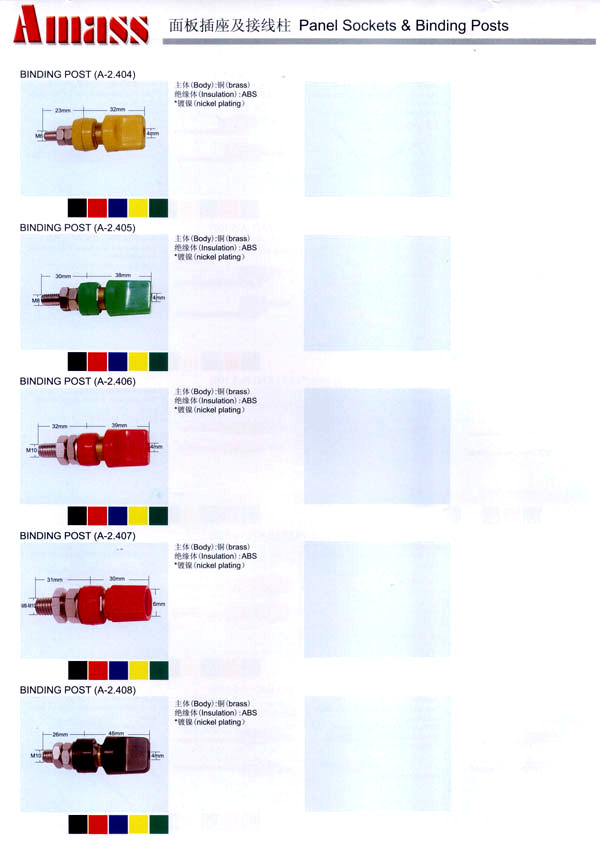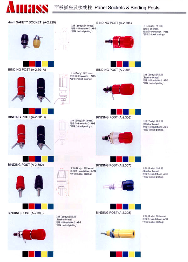 本公司專業(yè)生產(chǎn)各類香蕉插頭,香蕉插座,接線柱,電瓶夾,鱷魚夾,測試導線,測試筆等。產(chǎn)品分2mm/2.5mm/3mm/3.5mm/4mm五大系列,百余種款式, 各種香蕉插廣泛用于儀器、儀表、電力測試、教學、玩具,視聽設備、醫(yī)療儀器,保健產(chǎn)品等領域。公司技術(shù)力量雄厚,生產(chǎn)工藝先進,產(chǎn)品遠銷港、臺、歐美,并與飛利浦等國際品牌配套。公司本著精益求精的理念,歡迎新老客戶光臨。 我們擁有資深的工程師和豐富的電子產(chǎn)品銷售經(jīng)驗,專業(yè)生產(chǎn)各類電子接插件產(chǎn)品。 香蕉插頭,香蕉插座,電瓶夾,鱷魚夾等品種齊全、 質(zhì)量可靠,致力服務于通訊、數(shù)據(jù)通信、消費類電子產(chǎn)品、計算機和計算機外圍設備以及工業(yè)應用等領域,能給客戶提供全面采購解決方案。 我們秉承穩(wěn)健作風、誠實經(jīng)營、合理價格、完善服務的宗旨,在全體客戶的支持下,公司不斷創(chuàng)新進取,業(yè)績蒸蒸日上,已與數(shù)十家電子零件制造商及其分支機構(gòu)建立密切合作關系,在國內(nèi)擁有數(shù)百家固定客戶。