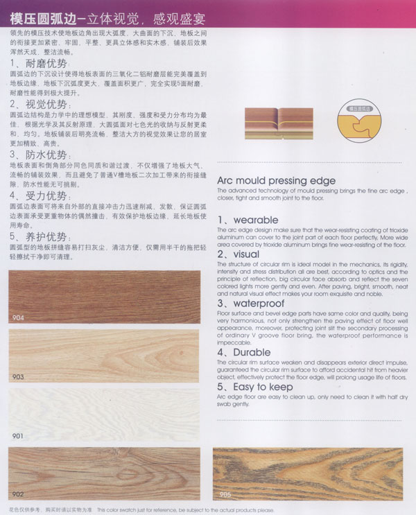 常州漢豐裝飾材料有限公司是一家涉及強(qiáng)化地板制造、屏風(fēng)鋁材生產(chǎn)、進(jìn)出口貿(mào)易的大型公司。2001年公司投入重資.全面引進(jìn)世界頂級(jí)一體化自動(dòng)流水生產(chǎn)線和具有國(guó)際先進(jìn)水準(zhǔn)的德國(guó)權(quán)威木地板生產(chǎn)技術(shù),興建強(qiáng)化地板生產(chǎn)基地。多年以來(lái).一直不斷加強(qiáng)生產(chǎn)設(shè)備、廠房基礎(chǔ)投入,目前公司年生產(chǎn)強(qiáng)化地板能力已經(jīng)達(dá)到了500萬(wàn)平方米,步入國(guó)內(nèi)一流行列,具備了雄厚的國(guó)際競(jìng)爭(zhēng)力。 漢豐地板以奉獻(xiàn)生活中最完美的地板為發(fā)展目標(biāo),時(shí)尚流行的設(shè)計(jì)風(fēng)格和多樣化的產(chǎn)品類(lèi)型,贏得了市場(chǎng)的廣泛贊譽(yù)和肯定。產(chǎn)品嚴(yán)格按照歐洲標(biāo)準(zhǔn)檢測(cè)強(qiáng)化木地板的各項(xiàng)性能指標(biāo).達(dá)到百分百的國(guó)際技術(shù)標(biāo)準(zhǔn),確保了每一塊地板都有著上乘品質(zhì),是綠色環(huán)保的好地板。并先后通過(guò)了Isc)9001國(guó)際質(zhì)量管理體系認(rèn)證,IS014001國(guó)際環(huán)境管理體系認(rèn)證.中國(guó)環(huán)境標(biāo)志產(chǎn)品認(rèn)證,深得用戶的一致好評(píng),是寫(xiě)字樓、商場(chǎng)、大型超市、學(xué)校、建筑樓宇、娛樂(lè)場(chǎng)所、家用私宅等鋪裝的首選地板。