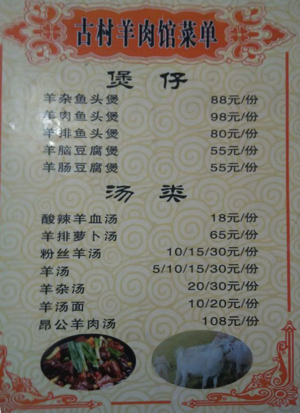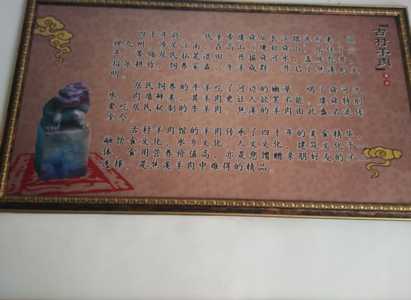 常州市武進鄭陸焦溪古村羊肉館選用放養(yǎng)的上等山羊,采用獨特的配方精心煮制而成,其特點:湯呈清色,肉質(zhì)細膩,味道純正,不腥不膻,色香味俱全。絕對不含任何食品添加劑,是純綠色食品。特別在冬季,有滋補、祛寒、健身養(yǎng)胃之功效! 在傳統(tǒng)羊肉湯基礎(chǔ)上,力求肉鮮湯鮮的制作原則,用火、刀工、器皿等諸多方面加以改進,F(xiàn)宰活羊,以優(yōu)質(zhì)的山羊為主,羊不超年半齡的捶羯蒙羊膻羯為標(biāo)準(zhǔn)。羊湯的主要技術(shù)就是羊肉湯的獨特配方,羊湯技術(shù)和羊湯的做法完全是兩碼事,羊湯技術(shù)是純正的羊湯的原始積累技術(shù),也就是包括純正羊肉的配方,羊湯做法如放入羊骨頭、羊肉等,而天然居羊湯之所以出類拔萃,因其羊的湯呈清色狀,鮮潔爽口,不腥不膻,不粘不膩,獨具特色。用新鮮羊骨、羊肉、羊肚、羊頭、羊腸等羊下水,加以傳統(tǒng)香料配方熬制。由于湯呈清色,喝起來香而不膻,入口鮮潔爽口、熱燙濃香,營養(yǎng)豐富。