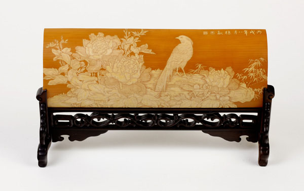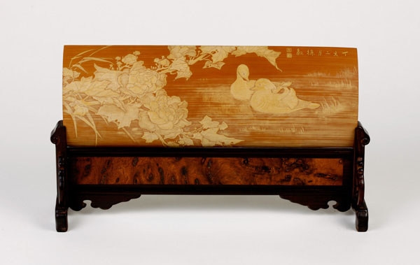 徐敏,一九七四年生于江蘇常州,擅長(zhǎng)山水油畫(huà)。師從竹刻家范遙青研習(xí)竹刻至今有二十余載。其作品受到竹刻權(quán)威鑒賞家王世襄認(rèn)可,并親筆為她題字褒獎(jiǎng)。現(xiàn)為常州市非物質(zhì)文化遺產(chǎn)傳承人。