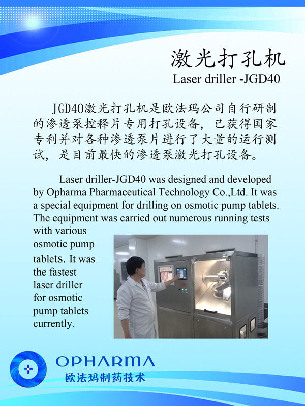 常州歐法瑪制藥技術(shù)有限公司位于長(zhǎng)江三角洲黃金腹地——常州。地理位置優(yōu)越、交通便捷,由鐵路、公路、水路、民航形成了一張立體交叉的交通網(wǎng)絡(luò)。 公司創(chuàng)建于2013年,是一家集研發(fā)、生產(chǎn)和銷售為一體,專業(yè)從事高速激光打孔機(jī)、滲透泵制劑研發(fā)、生產(chǎn)和銷售。目前公司擁有員工20人,科技研發(fā)和技術(shù)人員占員工總數(shù)80%以上,其中本科以上學(xué)歷占80%以上。 公司始建以來(lái),以前瞻的科學(xué)規(guī)劃,通過(guò)自主研發(fā),解決了高速激光打孔機(jī)諸多的世界難題,使之達(dá)到40片/秒以上且精確打孔的國(guó)際領(lǐng)先水平;同時(shí)開(kāi)發(fā)廢片自動(dòng)識(shí)別、剔除功能,以滿足客戶的實(shí)際所需。公司與瑞士等國(guó)家研究機(jī)構(gòu)的科技合作,以高速激光打孔機(jī)為基礎(chǔ),建設(shè)了滲透泵制劑研發(fā)和中試生產(chǎn)車間,開(kāi)發(fā)了多種藥物的滲透泵制劑,形成了從關(guān)鍵設(shè)備研制,新制劑開(kāi)發(fā)、工藝配套,到批量生產(chǎn)測(cè)試的滲透泵制劑開(kāi)發(fā)全過(guò)程技術(shù)團(tuán)隊(duì)和研究設(shè)施。公司瞄準(zhǔn)現(xiàn)代新型釋藥系統(tǒng),吸收國(guó)內(nèi)外高端人才,努力開(kāi)拓控緩釋技術(shù)、靶向給藥技術(shù)及智能給藥技術(shù)。 2013年公司被評(píng)為黑馬大賽“創(chuàng)業(yè)組50強(qiáng)”、“領(lǐng)軍人才創(chuàng)業(yè)重點(diǎn)企業(yè)”;2014公司通過(guò)了IS09001-2008質(zhì)量管理體系認(rèn)證、CE認(rèn)證、江蘇省質(zhì)量信得過(guò)企業(yè)。