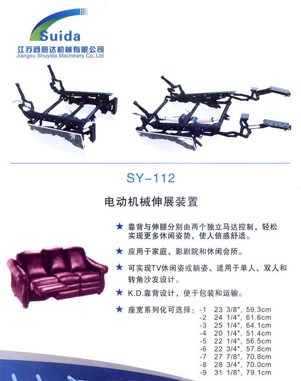 江蘇舒意達機械有限公司是一家集研發(fā)設計,生產(chǎn)制造及銷售的專業(yè)家具五金企業(yè)。公司成立于2006年,座落于風景秀麗的江南常州,交通運輸?shù)锰飒毢,為海?nèi)外客商的來往交流,洽談和供貨提供了諸多便利,公司占地面積28000平方米,生產(chǎn)廠房面積18000平方米,獨立的辦公樓,擁有良好的工作環(huán)境。 我們的經(jīng)營思理念:堅持以人為本,科技為先,用先進的設備,好的工藝流程制造一流的產(chǎn)品。 我們的口號:保證以優(yōu)秀的品質(zhì)服務于客人,我們的目標:研發(fā)更多舒適的產(chǎn)品,帶來生活的享受。 公司誠邀海內(nèi)外客商前來指導洽談,攜手共進,共造雙贏。