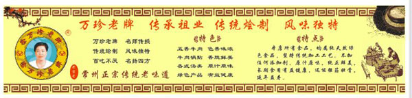 老牌牛肉創(chuàng)始人徐德洪始于1935年在常州東大街八仙浴室門口,以挑擔(dān)擺攤賣牛肉為生,1952年移至縣直街開設(shè)了徐德洪牛肉店。1958年公私合營改名為四時(shí)興牛肉店。文化大革命后又改名為立新牛肉店,1979年退休。他一生加工經(jīng)常五香牛肉,選料精良,工藝講究,配方獨(dú)到,牛肉色香味濃,味道純正鮮美,百吃不厭。長期以來,深得廣大顧客的一致好評(píng)和喜愛,成為常州城家喻戶曉的老字號(hào)。 徐萬珍乃徐德洪之女,傳承父業(yè),秉承父親精益求精的優(yōu)良傳統(tǒng),于1997年在同濟(jì)橋開設(shè)了萬珍老牌牛肉店,經(jīng)營至今二十載,嚴(yán)格選料把關(guān),遵循傳統(tǒng)加工工藝,不加工任何添加劑,繼承和保留了老牌牛肉的傳統(tǒng)特色和傳統(tǒng)老味道,色香味濃,原汁原味,得到了更多新老顧客的青睞。