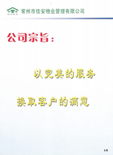 佳安物業(yè)管理有限公司位于常州市新北區(qū)薛家鎮(zhèn),2005年由薛家鎮(zhèn)黨委政府注冊成立,注冊資金50萬元,屬于三級資質企業(yè)。成立之初,佳安物業(yè)作為政屬事業(yè)單位,主要負責管理薛家鎮(zhèn)順園新村安置小區(qū)。隨著薛家鎮(zhèn)經濟和人口的發(fā)展,為主動適應經濟發(fā)展新常態(tài),全面深化物業(yè)綜合改革,打造具有薛家特色的物業(yè)公司,佳安物業(yè)由政府下屬的事業(yè)單位正式轉變?yōu)楠毩⑦\營的企業(yè),并增資到1000萬元。 2017年6月,公司通過審核被評為“AAA”級信用企業(yè),同月,公司實施ISO9001質量管理體系標準,并于8月通過質量體系認證審核。2018年8月,公司通過了ISO14001環(huán)境管理體系、ohsas18001職業(yè)健康安全管理體系的認證審核。 目前,公司主要承接小區(qū)物業(yè)服務及廠區(qū)外派保安服務、保潔服務等,F(xiàn)公司為薛家鎮(zhèn)順園一村至順園九村安置小區(qū)及奧林匹克花園、怡景名園2處商業(yè)小區(qū)提供物業(yè)服務;為江南農村商業(yè)銀行新北區(qū)所有支行、中車鐵馬、投資服務中心、華夏藝博園、薛家幼兒園、薛家小學及薛家中學等單位提供外派保安服務;為薛家鎮(zhèn)中心廣場及松林別墅提供保安服務;為華夏藝博園及投資服務中心提供保潔服務等。 在這十余年中,佳安物業(yè)與時俱進,銳意進取,為地方建設發(fā)展注入動力,為居民和企業(yè)安全保駕護航,尤其是在實踐中,我們積極探索,正逐步摸索出一條適合薛家城鄉(xiāng)一體化建設的社區(qū)物業(yè)管理的新路。希望通過今天的分享,和大家一起探討我們在“管辦分離”等方面的實踐經驗,并在此基礎上為薛家的可持續(xù)發(fā)展提供可借鑒、推廣的新型物業(yè)管理之路。