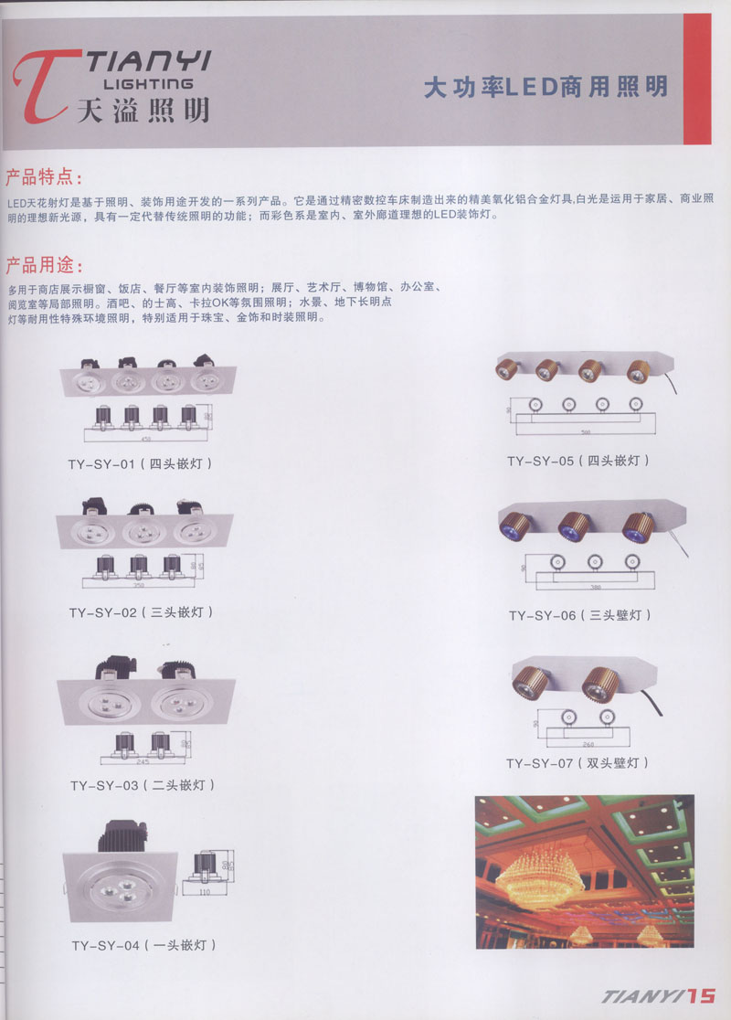 天溢照明是中國領先的專業(yè)從事LED廣告照明裝飾燈具設計、系統(tǒng)開發(fā)、燈具制造、工程服務一體的專業(yè)型公司,本公司產品已廣泛應用于全國大多數(shù)城市夜景亮化景觀照明、酒店休閑娛樂夜場夢幻燈光、戶內外廣告宣傳、建筑及室內照明以及家居裝飾等場合。 本公司產品涵蓋景觀裝飾照明、商用照明、居家照明、信息廣告顯示等領域,我們將性能可靠與適中價格的LED全系列產品帶到世界各個、角落。