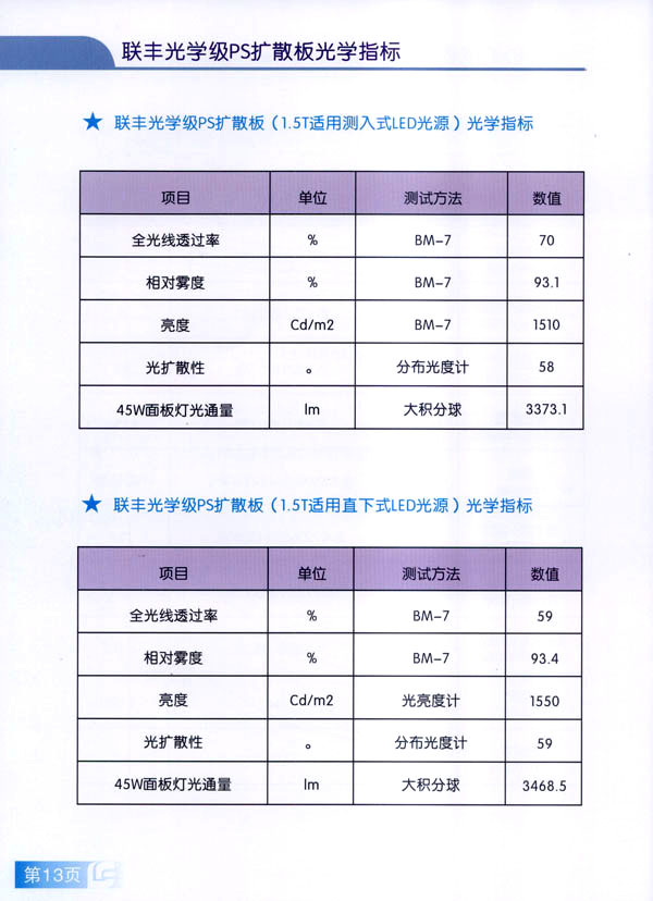 常州市聯(lián)豐(鏡面輥)集團(tuán)成立于2000年,是國內(nèi)從事板片材行業(yè)輥筒制造的專業(yè)企業(yè)。聯(lián)豐集團(tuán)全資子公司常州市聯(lián)豐光電科技有限公司成立于2013年6月。聯(lián)豐光電專業(yè)從事光學(xué)級擴(kuò)散板的研發(fā),生產(chǎn)和銷售。擁有各類高級技術(shù)研發(fā)人員10人,生產(chǎn)、管理及銷售人員60人。公司廠房占地面積2萬平方米,工廠擁有十萬級凈化車間,能有效滿足光學(xué)領(lǐng)域擴(kuò)散板生產(chǎn)的環(huán)境要求。公司已經(jīng)申報(bào)江蘇省高新技術(shù)企業(yè)。 公司現(xiàn)擁有全新進(jìn)口PS專用擴(kuò)散板材生產(chǎn)線兩條,月生產(chǎn)能力650噸PS擴(kuò)散板。日本進(jìn)口協(xié)榮裁切一體機(jī)兩臺(tái),月加工能力50萬片(32寸擴(kuò)散板)。 聯(lián)豐生產(chǎn)的VFP系列PS擴(kuò)散板能廣泛應(yīng)用于直下式LED,CCFL液晶電視背光模組。產(chǎn)品在很多國內(nèi)一線TV的背光模組上使用。產(chǎn)品具有高輝度,高擴(kuò)散性,特別適用于超薄背光模組的擴(kuò)散部件,能有效降低成本,節(jié)約能源。 由于LED照明行業(yè)的興起,公司特別針對于LED面板燈和筒燈開發(fā)的LFP系列擴(kuò)散板,在滿足透光率條件下,能最大限度提高光通量,從而增加燈具的光效,受到廣大客戶的好評。