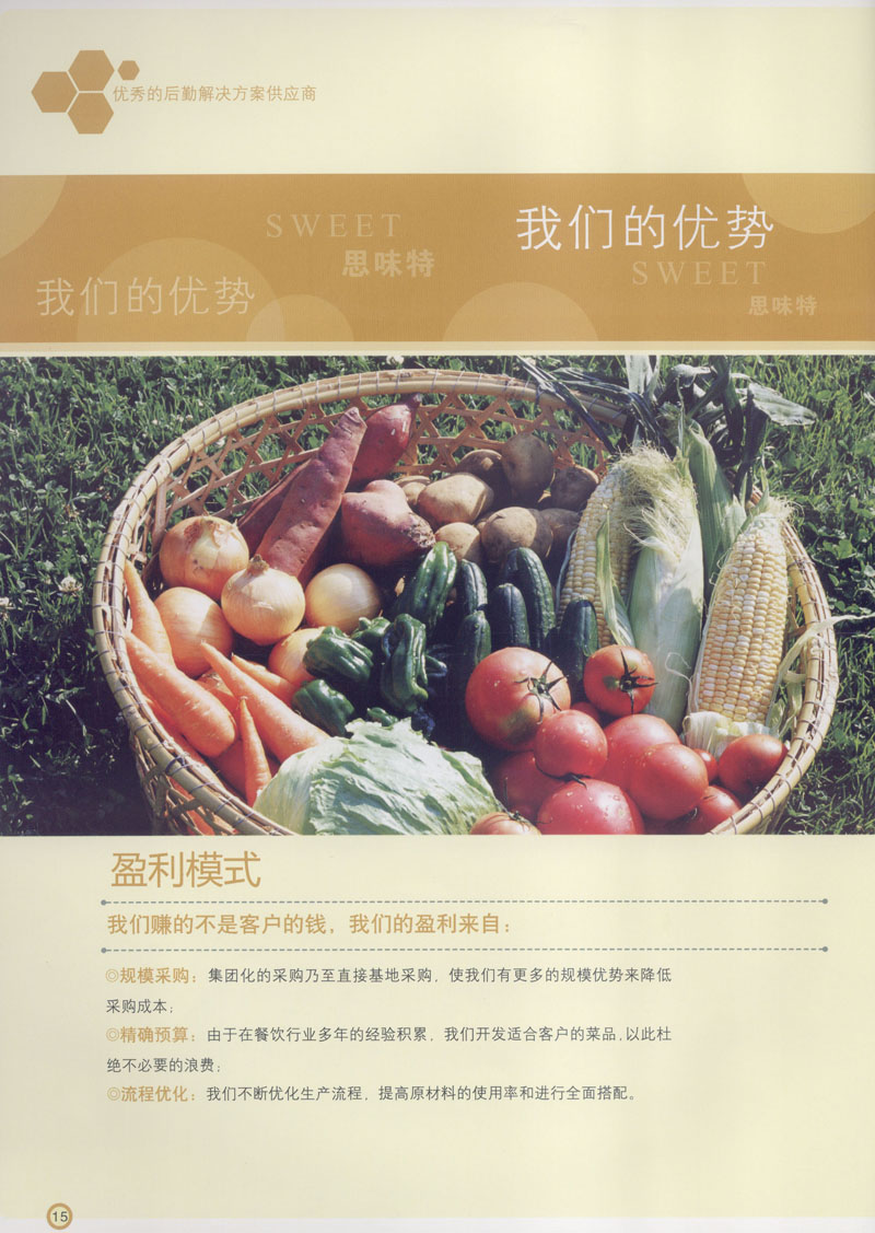 常州市思味特餐飲有限公司是一家專業(yè)從事企事業(yè)后勤服務(wù)的有限責(zé)任公司,公司從承包食堂起步,逐漸發(fā)展為經(jīng)營團(tuán)膳承包、營養(yǎng)送餐、生活區(qū)管理、連鎖餐廳的綜合型企業(yè)。2008年公司斥資100萬元,在常州興建了可以同時提供3000餐膳食的中央廚房,重點打造“和美客”后勤服務(wù)品牌,全力為企事業(yè)單位解決后勤后顧之憂。 到目前為止,我們合作成功的企事業(yè)單位超過50多家,服務(wù)人數(shù)突破15萬,合作單位包括國家機關(guān)、國有企業(yè)、三資企業(yè)、民營企業(yè)、學(xué)校、醫(yī)院等,其中不乏國際知名品牌公司。 和美客愿為更多的國內(nèi)外企事業(yè)單位及機關(guān)團(tuán)體分憂解難,從廚房設(shè)計、菜品配送、團(tuán)膳承包、到生活區(qū)管理等提供全方位的服務(wù)。