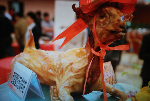 張萬成羊莊一家綜合性的公司,下設酒店,羊產品加工廠,屠宰廠,山羊養(yǎng)殖場。 酒店位于常州西夏墅浦河村,酒店羊宴規(guī)模占地30畝,酒店主要經營特色全羊宴。 一個祖?zhèn)鞯臍⒀虼髴,傳到張萬成,已是第六代了。張家的羊肉,素來以肉質鮮美著稱,張萬成羊莊的主人張建龍是第六代傳人,張家的羊肉素來以肉質鮮美著稱,從常州新北區(qū)沿黃河西路往機場方向直行至羅溪右轉,穿過滬寧高速高架橋后不遠處左拐沿翠屏湖路直走便能看到張萬成羊莊,酒店上下共有三層,2000多平方米經營面積,能同時接待近30桌客人的規(guī)模。有自己的羊圈和屠宰場,每天殺20多只,菜式近100道。光是原料,就從原來羊身上的幾個主要部位,增加到除了羊牙齒以外的一只整羊全部可以入菜。烹制方式,更是在本土單一的燒、炒、煮基礎上,借鑒了東北、廣東、四川等地的烹羊特色,增加了蒸、涮、烤、煎、炸等多種方式。 注重原汁原味的冷菜 白切羊肉:精選羊頸部的活肉精制而成,肥瘦適中,絲毫沒有一般羊肉的膻味,沾少許張萬成羊莊秘制的醬料,口感非常好。 美味羊舌:張家的羊舌感覺是用特殊的醬料腌制過的,咸中略有甜味,口感鮮嫩卻肥而不膩,味道很香。 除了白切羊肉和羊舌以外還有許多冷菜品種,如羊肚、羊心、羊耳朵等。。 火候控制精準的炒菜 炒羊肝:地道的農家風味,與大蒜葉同炒,蒜香濃郁,羊肝鮮嫩,這羊肝可是火候菜,羊肝鮮嫩與否不但取決于廚師對火候的掌握,還在于上桌放置時間的長短,所以羊肝上桌后要盡快食用,看羊肝是否鮮嫩,只需用筷子挑起并輕輕抖動,有彈性者為佳。 美味羊寶:以韭黃、鮑味菇爆炒的羊寶,說是滋補壯陽的一道金貴菜,配料講究的燒菜系列 宮廷燴羊肚:較為金貴的菜品,配菜貴于主料,是以名貴的素鮑和新鮮的筍絲與羊肚同煮,口感濃郁,營養(yǎng)豐富。 海參白燒羊肉:將取自7個月大羔羊身上的帶皮腿肉與海參一同煨煮,菜肴美容滋補,兩種鮮味互相補益達到完美交融狀態(tài),口感甚佳。 魚羊鮮:新鮮的青魚配上羊肉,既有本地羊肉的肥嫩,又有魚肉的鮮香,鮮!鮮!古代人造字就是有道理!”店里可以根據客人的需要配以魚回魚、鯰魚、鱖魚等。 特色的羊宴點心 羊肉餛飩:羊莊老板自創(chuàng)的羊宴點心,看似普通的油燜跑蛋卻另有乾坤,將蛋掀開便能看見藏于其中的羊肉菜餡餛飩,菜和肉都是自家新鮮的原料,很好吃。 手工搟面:不知道是因為面是真正用手工搟制還是因為加入了鮮味十足的羊湯,總之味道非常好,面勁道,湯也鮮美! 張萬成羊莊的羊湯也是遠近聞名,因為是祖?zhèn)鞯氖炙,做出來的羊湯不腥不膻,香醇不膩,味道十分鮮美,加入粉絲或者面條更是難得的美味。